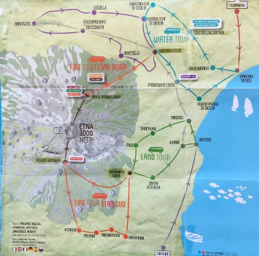 Et besøg i på Sicilien er en oplevelse ud over det sædvanlige. Her kun 30 km. fra lufthavnen i Catania kan opleves den aktive vulkan Etna., der så sent som 30.5.2019 startede et udbrud, der malede siden ned af bjerget mod nord rødt af flydende lava, der sprang ud fra jordens indre. Vulkanen er meget aktiv og man kan på på de opstillede webcams mange steder på bjerget følge aktiviteterne og opleve udbrud hvor lavaen komme flydende fra et af de mange kratre på vulkanen.